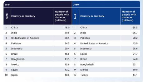 2025 年国际糖尿病联盟(IDF)世界糖尿病大会发布了《全球糖尿病地图》第十一版,该报告显示,2024 年全球 20-79 岁成年糖尿病患者已达 5.89 亿,占该年龄段总人口的 11.1%;预计到 2050 年,这一人群规模将攀升至 8...